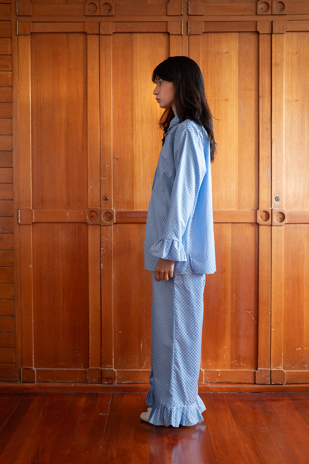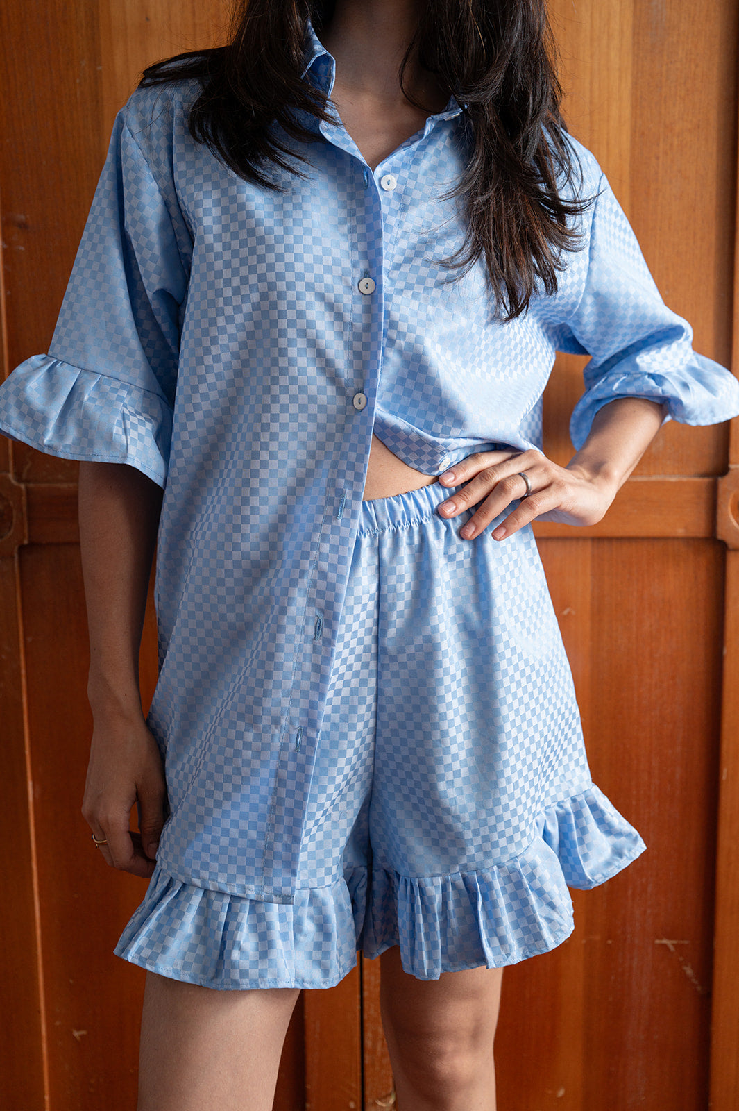 Delicate ruffled sleeves and hem